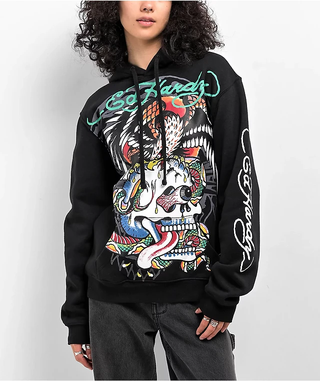 Ed Hardy Phoenix Y2K Black Crop Zip Hoodie