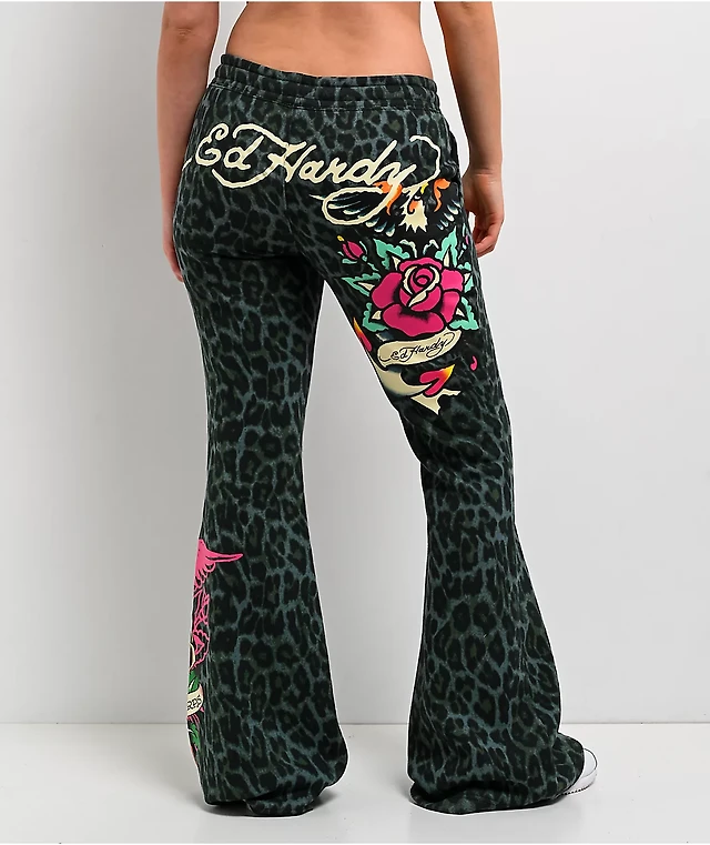 Ed Hardy Dagger Heart Black Wide Leg Sweatpants