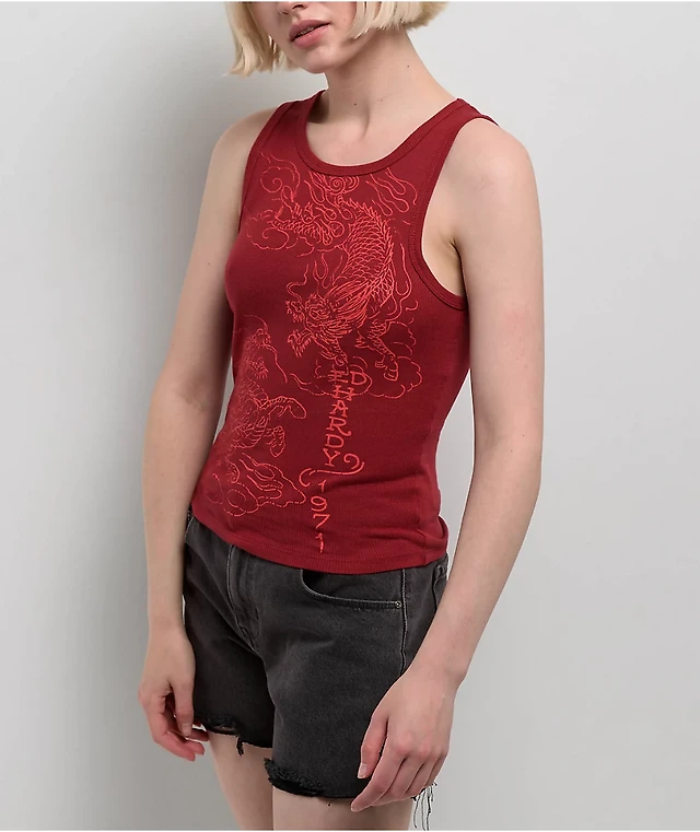 Ed Hardy Eagle Tiger Red Crop Zip Hoodie
