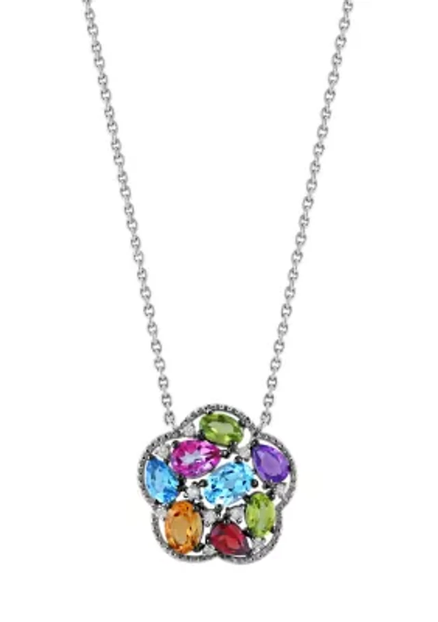 Diamond, Amethyst, Blue Topaz, Citrine, Rhodolite and Peridot Necklace in 14K Yellow Gold