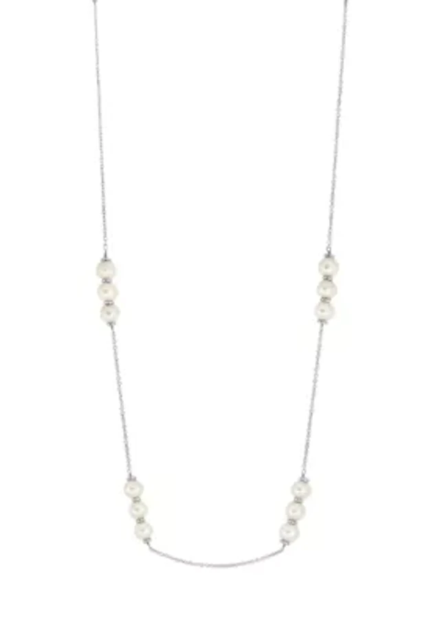 White Topaz and Freshwater Pearl Flower Pendant Necklace in Sterling Silver