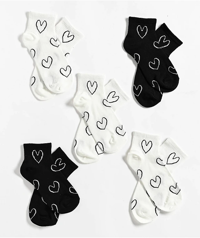 Ella Shea 5 Pack Heart Black & White Ankle Socks
