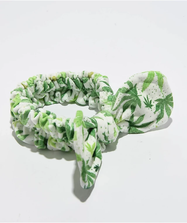 Ella Shea Marijuana White & Green Plush Bow Headband