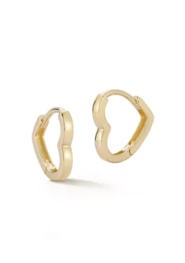 14K Gold Heart Huggie Hoop Earrings