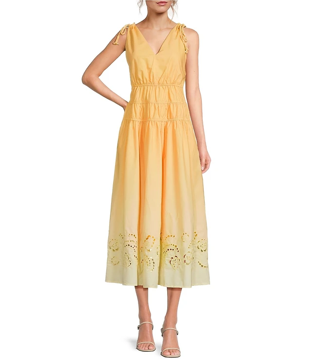 En Saison Taylor V-Neck Sleeveless Eyelet Trim Maxi Dress