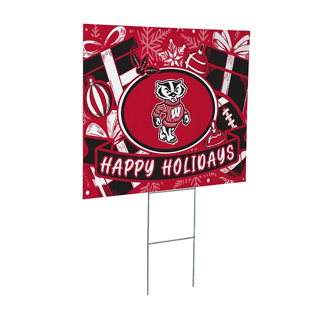 Wisconsin Badgers 24" x 18" Happy Holidays Christmas Outdoor Staked Yard Sign
