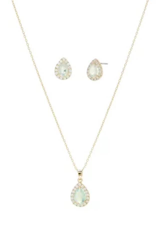 Layered Aqua Beaded Teardrop Pendant Necklace