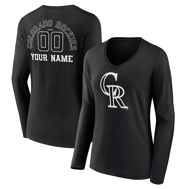 Women's Black San Diego Padres Monochrome Personalized Name & Number Long Sleeve V-Neck T-Shirt