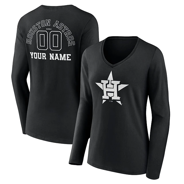Women's Black Texas Rangers Monochrome Personalized Name & Number Long Sleeve V-Neck T-Shirt
