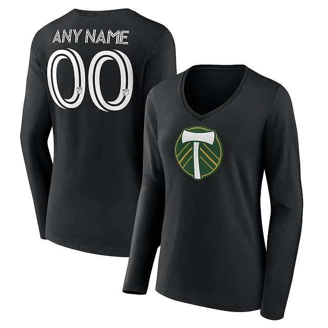Women's Black Portland Timbers Custom Long Sleeve V-Neck T-Shirt