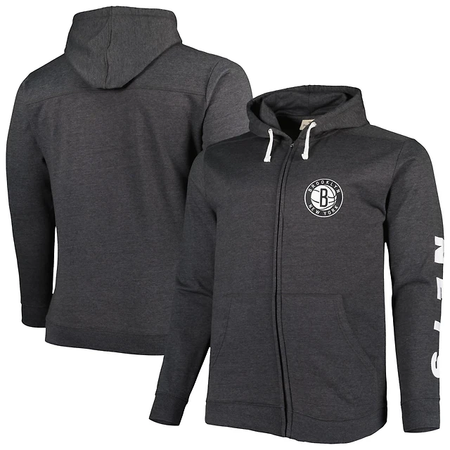 Fanatics Heathered Brooklyn Nets Big Tall Down and Distance Full-Zip Hoodie