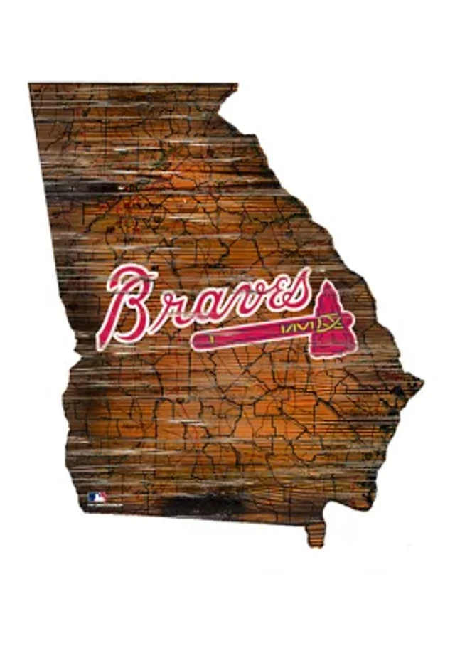 MLB Atlanta Braves 24in. Distressed State w/Logo Sign