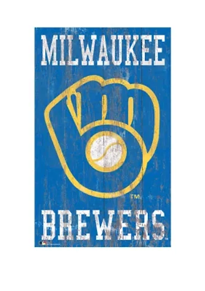 MLB Milwaukee Brewers 11 in x 19 in Heritage Distressed Logo Sign