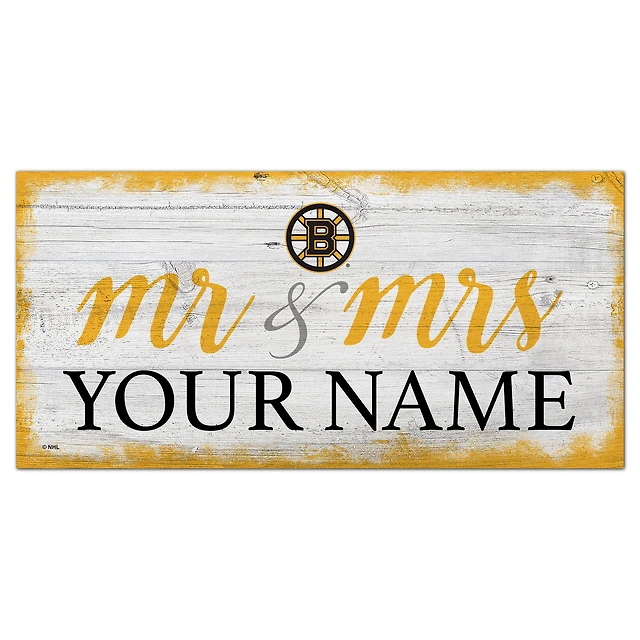 Boston Bruins 6" x 12" Personalized Mr. & Mrs. Script Sign