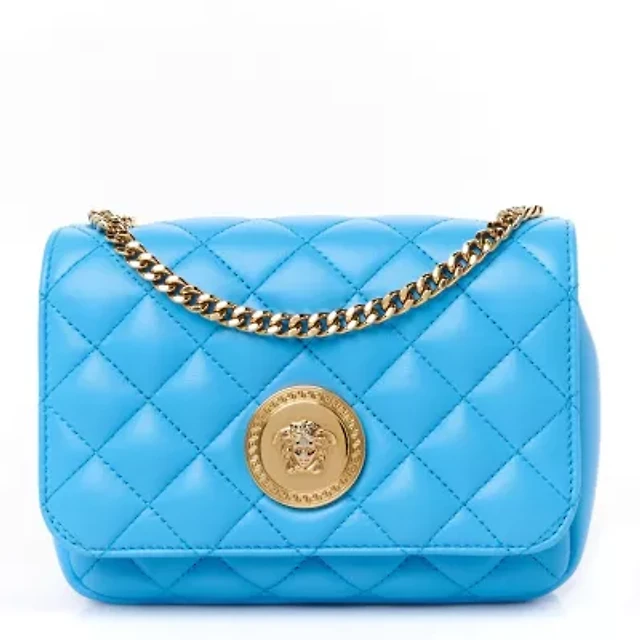Versace Tweed Quilted Medusa Wallet on Chain Crossbody Pink Blue -FINAL SALE NO RETURNS
