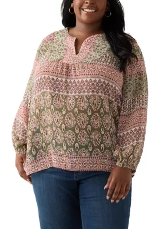 Plus Crew Neck Hatchi Ribbed Knit Top