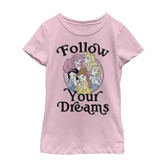 Follow Your Dreams Little & Big Kid Girls Crew Neck Short Sleeve Slim Fit Princess Graphic T-Shirt
