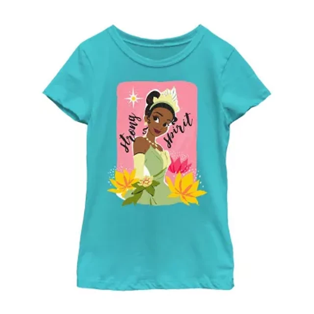 Disney Little & Big Kid Girls Crew Neck Short Sleeve Regular Fit Princess The Frog Graphic T-Shirt