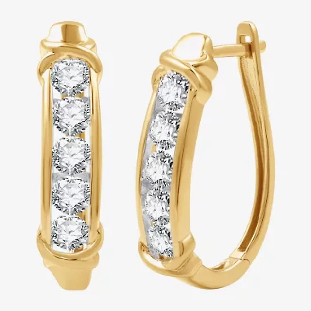 Womens 1 CT. T.W. White Diamond 10K Gold 16.1mm Hoop Earrings