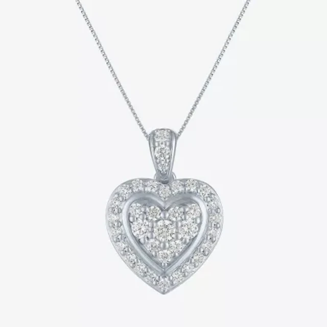 Womens 1/5 CT. Lab Grown White Diamond 14K Gold Over Silver Heart 17 1/2 Inch Pendant Necklace