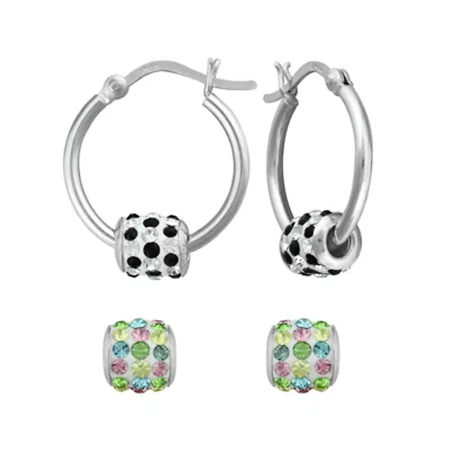 Sterling Silver Interchangeable Crystal Rondelle Hoop Earrings