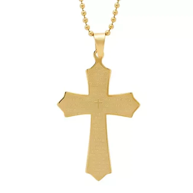 Mens Diamond Accent Diamond Stainless Steel Cross 24 Inch Pendant Necklace