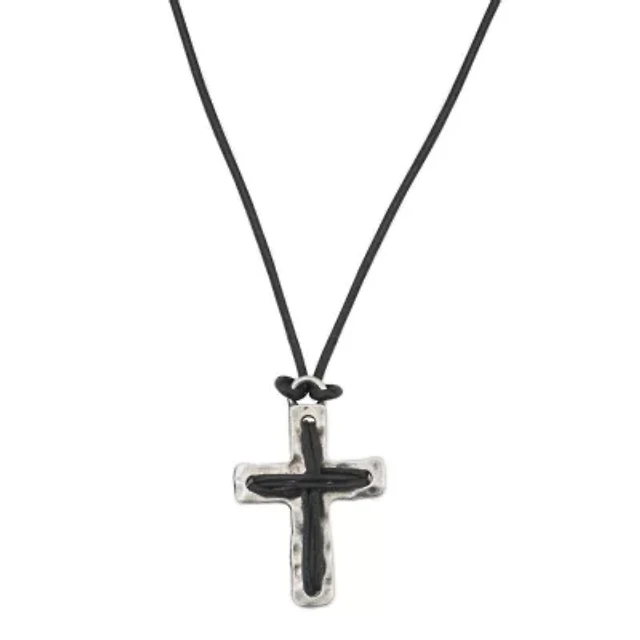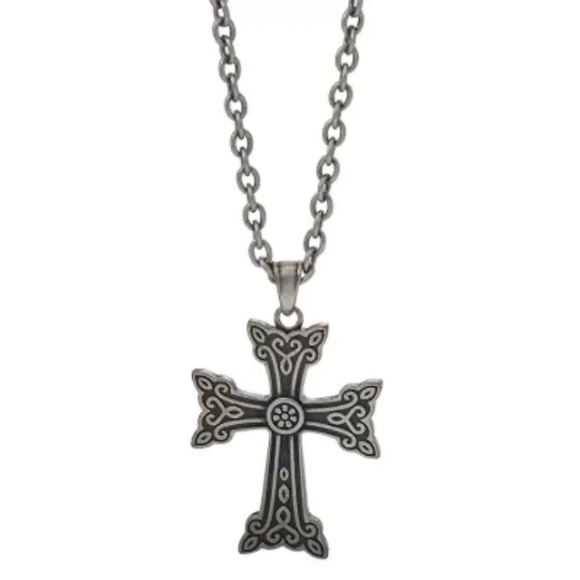 Mens White Cubic Zirconia Sterling Silver Cross 24 Inch Pendant Necklace