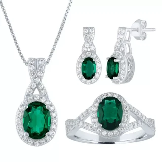 Womens Lab Created Green Emerald Sterling Silver Jewelry Set