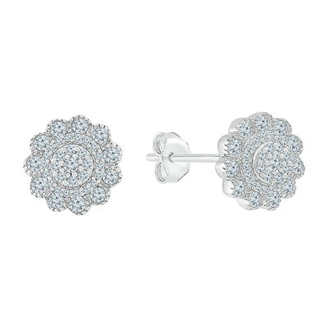 1 CT. T.W. Natural White Diamond Sterling Silver 7.1mm Stud Earrings