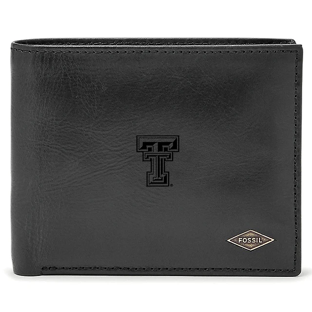 Men's Fossil Black Texas Tech Red Raiders Leather Ryan RFID Passcase Wallet