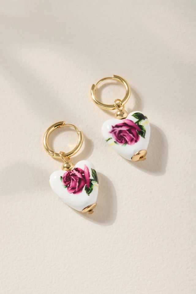 Ally Ceramic Rose Heart Huggie Earrings