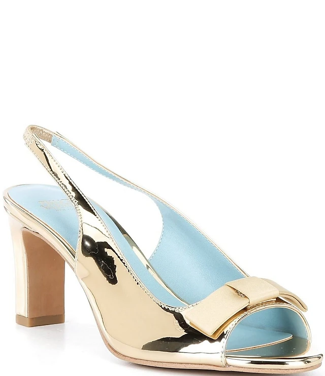 FRANCES VALENTINE Reese Mirrored Leather Slingback Bow Dress Sandals