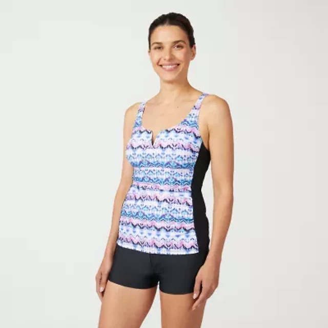 Free Country Womens Adjustable Straps Built Bra Abstract Blouson Swimsuit Top