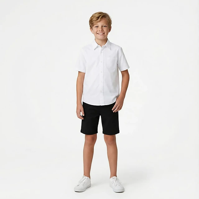 French Toast Little & Big Kid Boys Wrinkle Resistant Button Down Collar Short Sleeve Dress Shirt
