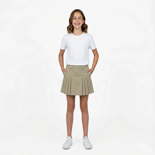 Girls 4-20 Adjustable Waist Front Tab Pleated Skirt