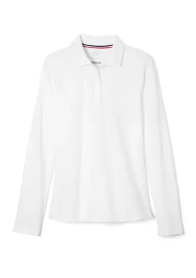 Girls Long Sleeve Stretch Piqué Polo Shirt