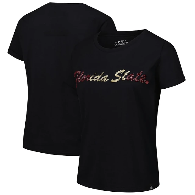 Women's Black Florida State Seminoles Hand Sewn Beaded Script T-Shirt