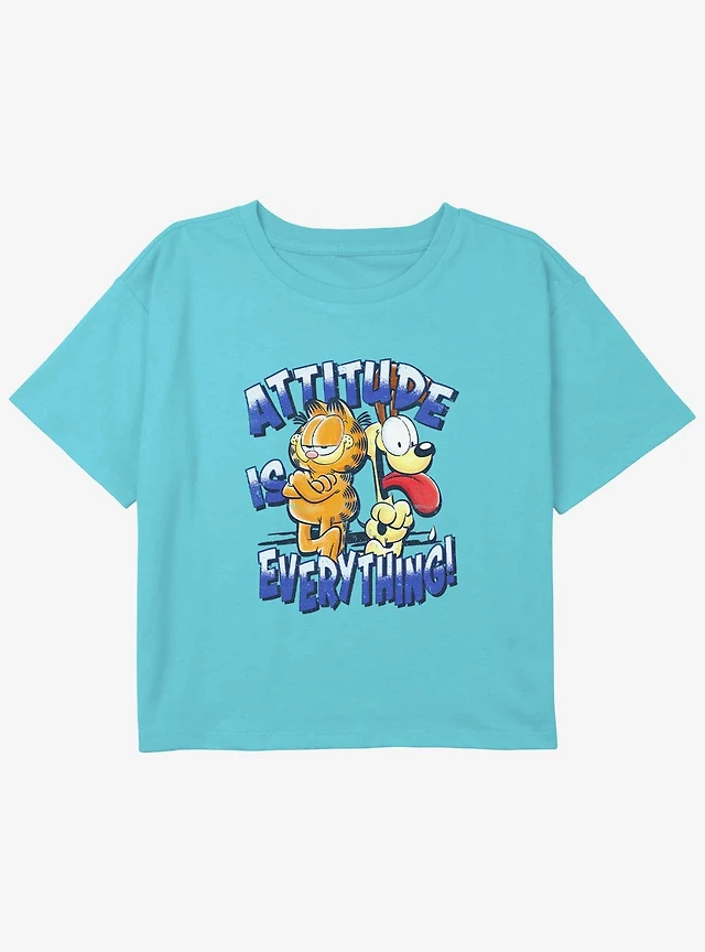Garfield Attitude Is Everything & Odie Youth Girls Boxy Crop T-Shirt