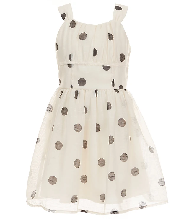GB Big Girls Dotted Square Neck Sleeveless Faux Corset Dress