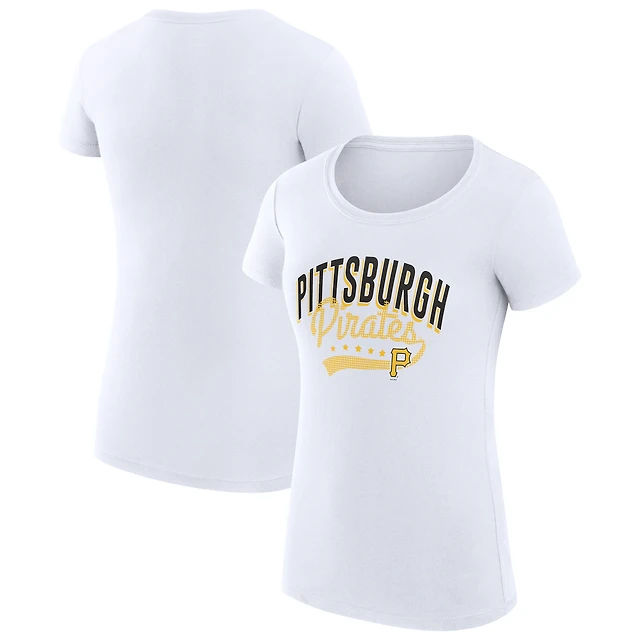 Women's G-III 4Her by Carl Banks White Pittsburgh Pirates Super-Slim Fit Lightweight Filigree Team T-Shirt
