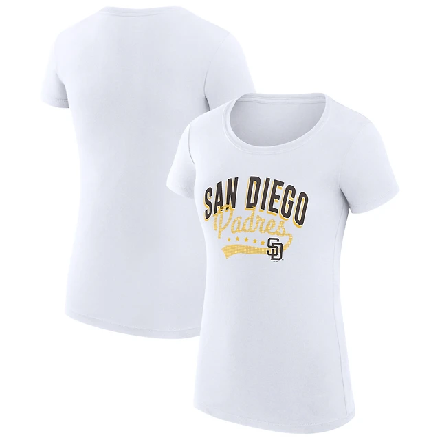Women's G-III 4Her by Carl Banks White San Diego Padres Super-Slim Fit Lightweight Filigree Team T-Shirt