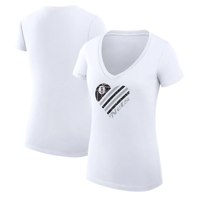 Women's G-III 4Her by Carl Banks White Brooklyn Nets Super-Slim Fit Lightweight Heart V-Neck T-Shirt