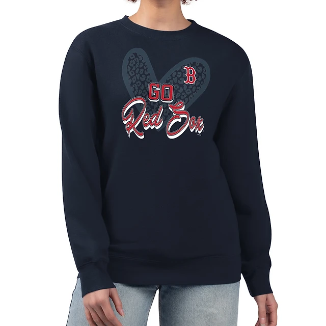 Women's G-III 4Her by Carl Banks Navy Boston Red Sox Leopard Heart Pullover Sweatshirt