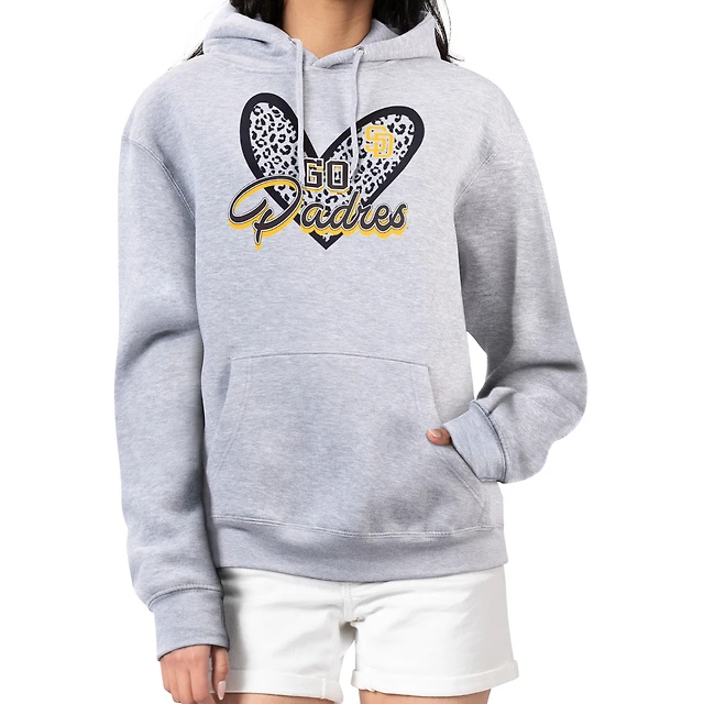 Women's G-III 4Her by Carl Banks Heather Gray San Diego Padres Leopard Heart Pullover Hoodie