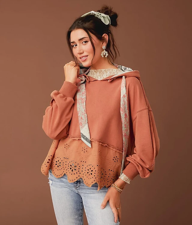Scalloped Eyelet Hooded Sweatshirt