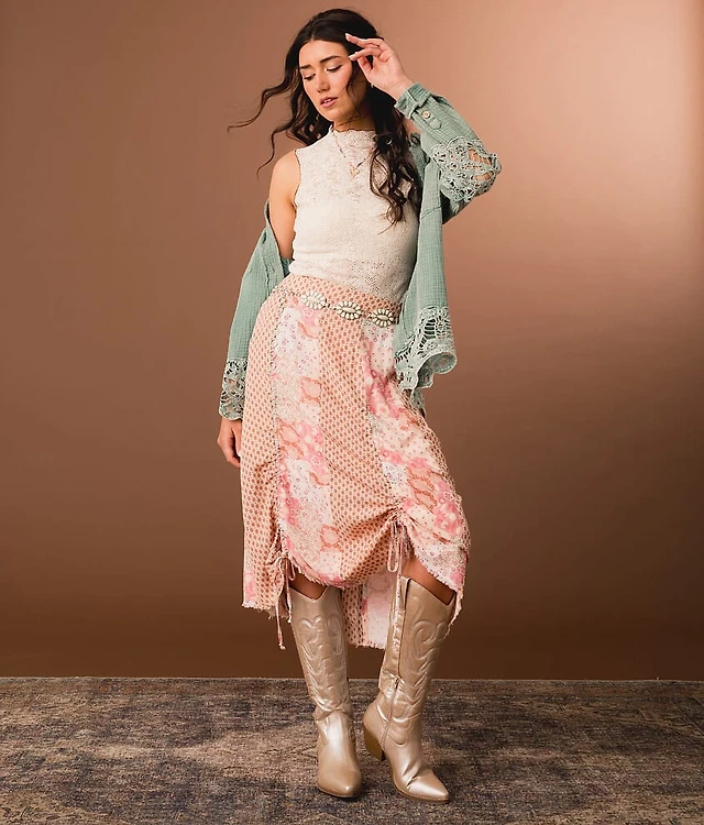 Pieced Cinch Tie Midi Skirt