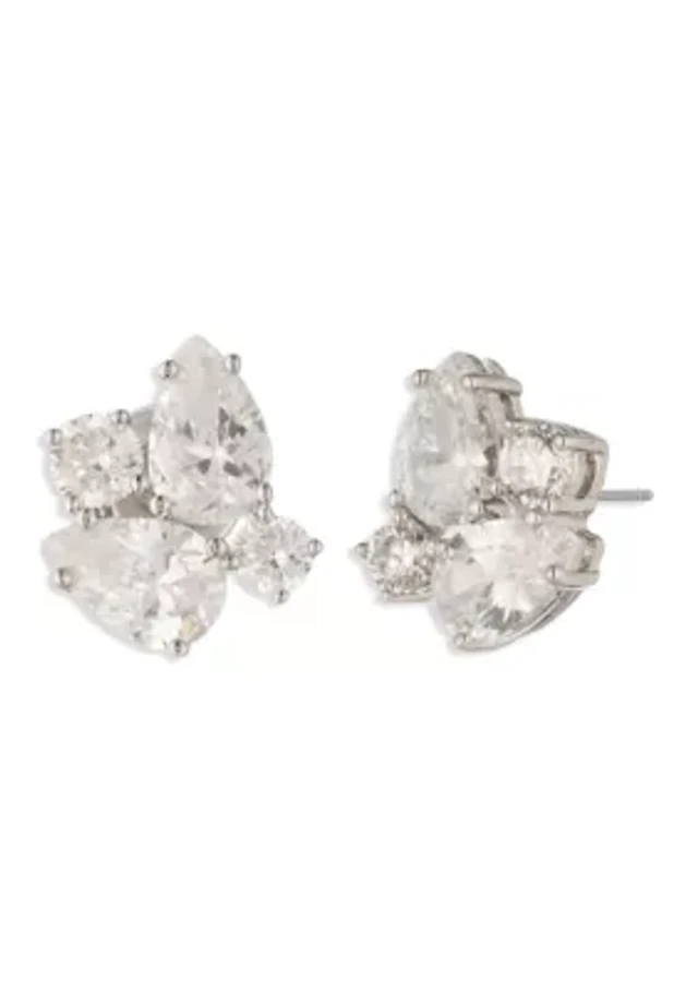 Cluster Cubic Zirconia Double Drop Earrings
