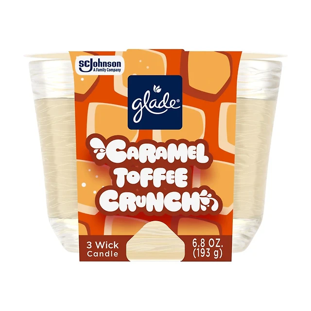 Glade 3-Wick Scented Candle Jar, Caramel Toffee Crunch Scent, 6.8 oz