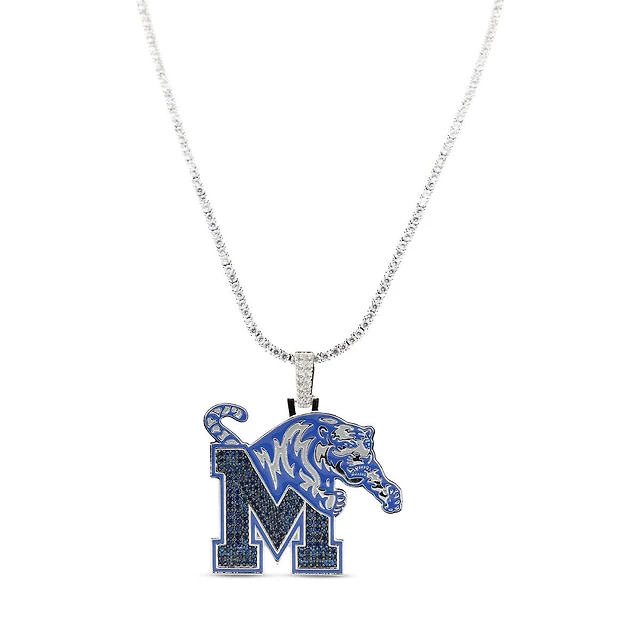 GLD Memphis Tigers 14K White Gold Logo Pendant & 20" Tennis Chain
