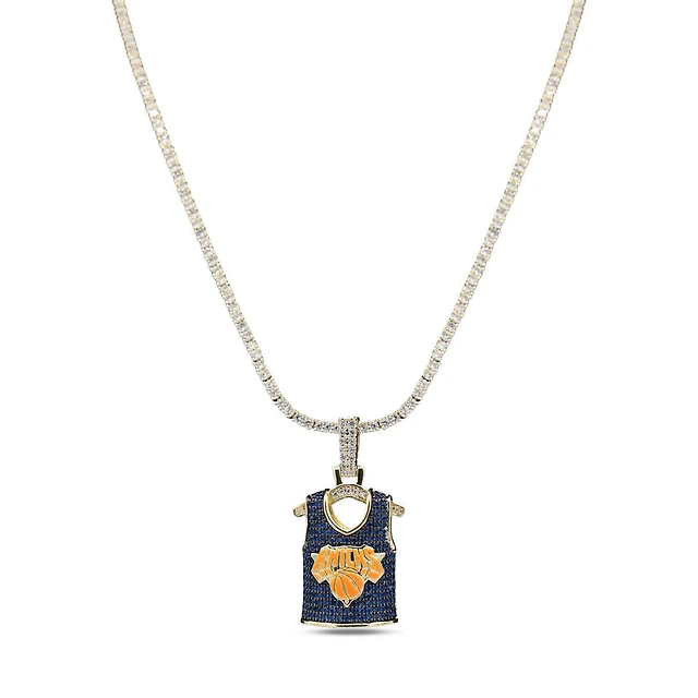 GLD New York Knicks 18K Yellow Gold Jersey Logo Pendant & 20" Tennis Chain